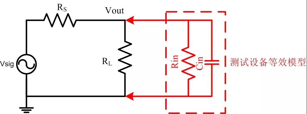 圖13 探頭補償示意圖 8、探頭的負載效應 前文提到過,探頭都是具有輸入電容和輸入電阻的,這就導致其并不能當成一個阻抗無窮大的設備,其測量時的等效模型如下圖所示。