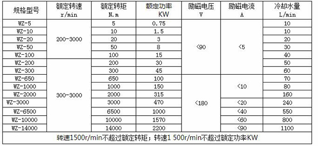 五、使用環境 1、最高環境溫度不超過40℃; 2、海拔高度不超過2000m; 3、當環境溫度為20℃時,相對濕度不大于85%。 六、注意事項 1、按額定轉矩、轉速、功率選用渦流制動器。嚴禁超轉矩、超功率、超轉速使用。 2、運行前須對電渦流制動器進行檢查。核定銘牌數據是否為要求的規格;檢查緊固件是否松動,各接線板接線是否正確,接觸是否良好,如有缺陷或不良應予排除或更換;用500伏的兆歐表檢查勵磁繞組,其絕緣電阻不低于12M Ω。 3、產品安裝時,以軸伸水平,底腳放平后旋緊地腳螺栓,并保證各相連裝置轉動輕快靈活。 4、冷卻水中不含有直徑1mm以上的固體顆粒或其它雜物,其pH值為6-8,硬度為300ppm以下。 5、進水壓力一般為不小于0.1Mpa,不大于0.3Mpa。 6、進水溫度最高不超過30℃,出水溫度約為50℃-60℃為宜,大于70℃時則應加大冷卻水量。 7、加載(加勵磁)之前必須先通入冷卻水,卸載(去勵磁)五分鐘之后才能斷開冷卻水。嚴禁無水運行,否則短時間便會損害設備。水壓、流量應滿足說明書要求。 8、電渦流制動器和控制器必須有可靠接地。 9、制動器不工作時必須關閉控制器,勵磁電流回零。工作時注意勵磁電壓、電流,嚴禁超過額定參數運行。 10、電渦流制動器周圍應保持清潔,進出水口應保持暢通。 11制動器投入運行后,應定期給軸承添加潤滑脂。 12運行兩年后應進行大修,清洗軸承,更換潤滑脂,發現軸承損壞應更換。